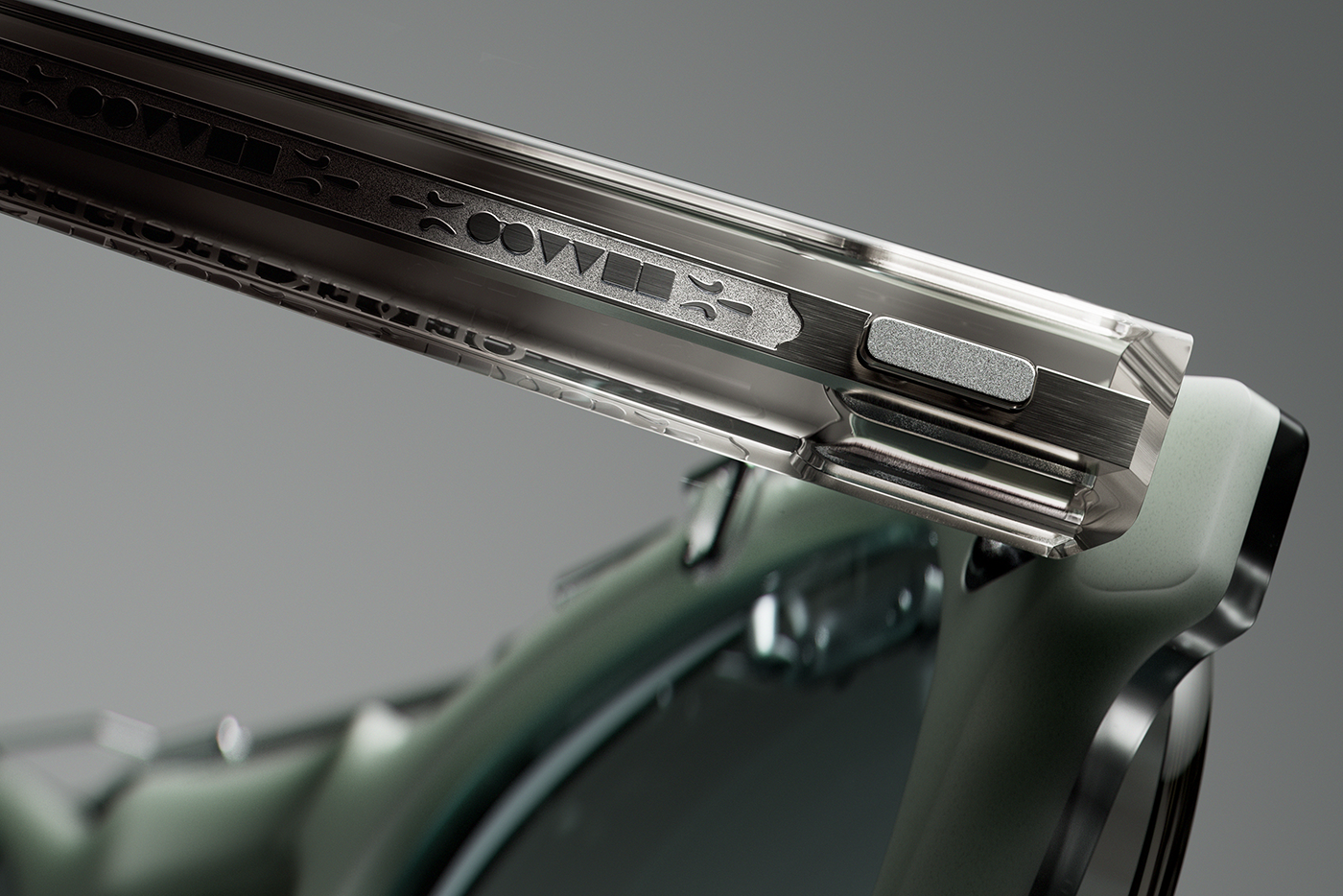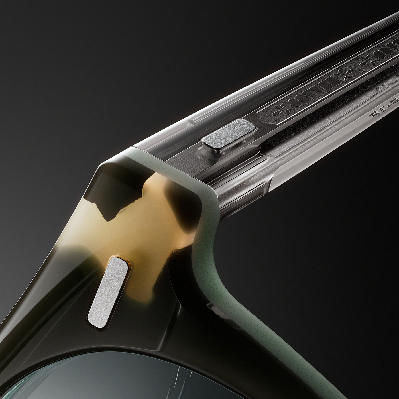 Focus is placed on micro-scale reflections, edges, and surface transitions.