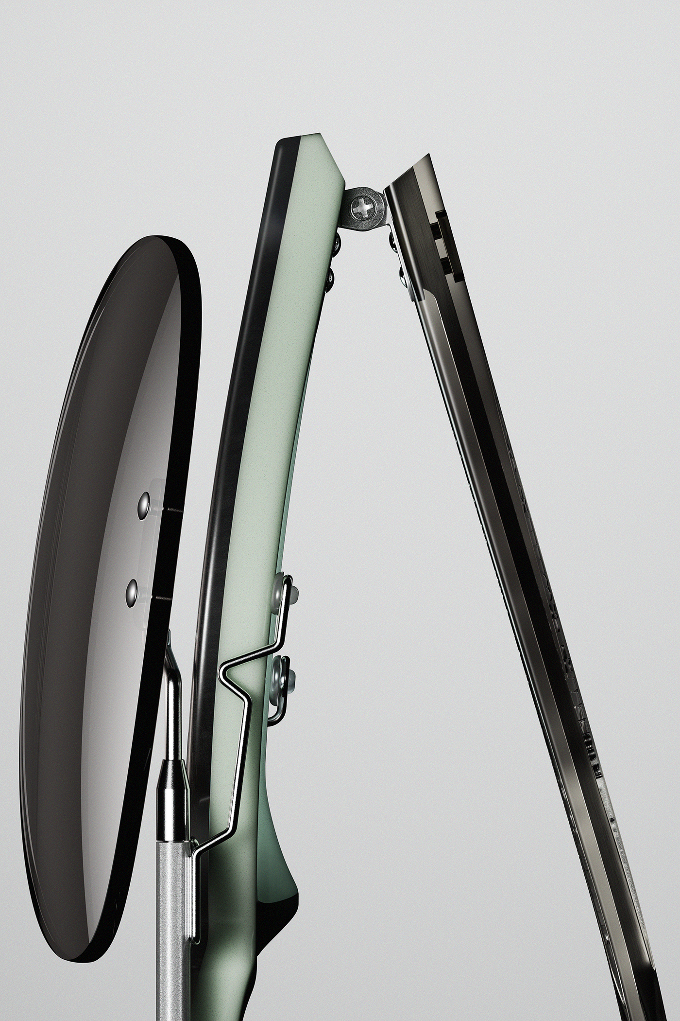 balancing low-key and high-key setups. Classic proportions and deep acetate become a medium for light itself: controlled reflections, soft highlights, and form revealed through